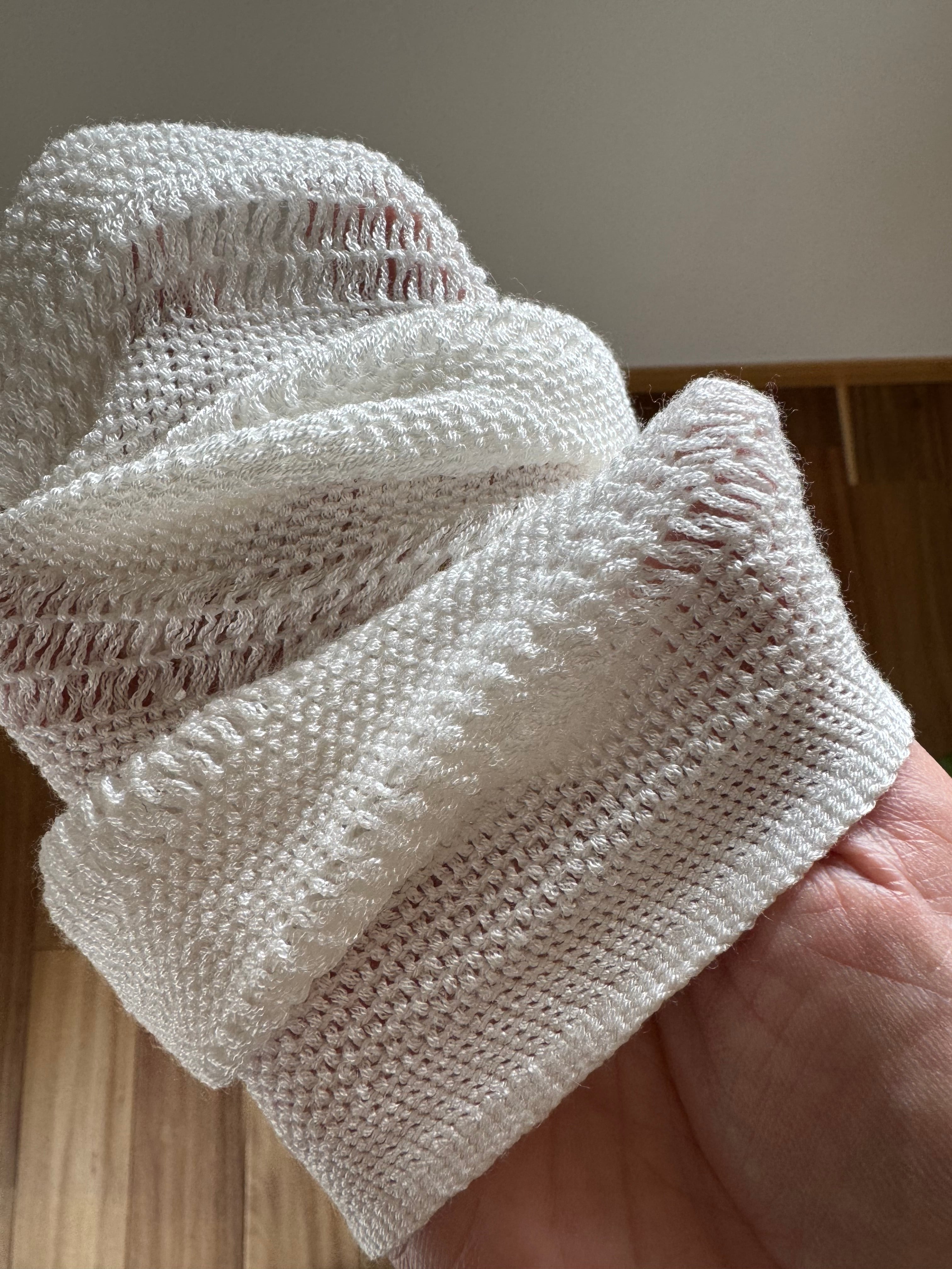 綿ガーゼやマイクロファイバー布に比べて非常に摩擦が少なく、滑らかで柔らかい肌触りが特徴です。